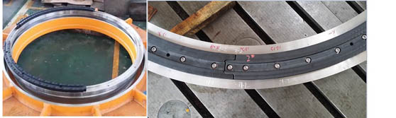 我们为水电项目提供的密封环产品一般应用于水轮机,都是根据客户提供的设计图纸进行加工,密封环直径600mm-4000mm或更大,根据项目图纸要求, 一般一个密封环会由4块或8块弧形拼接而成。使用时安装在配套底环密封槽中。
